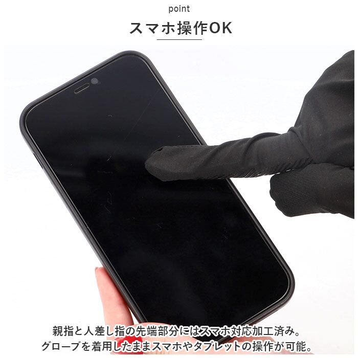 ・親指と人差し指の先端部分にはスマホ対応加工済み。グローブを着用したままスマホやタブレットの操作が可能。