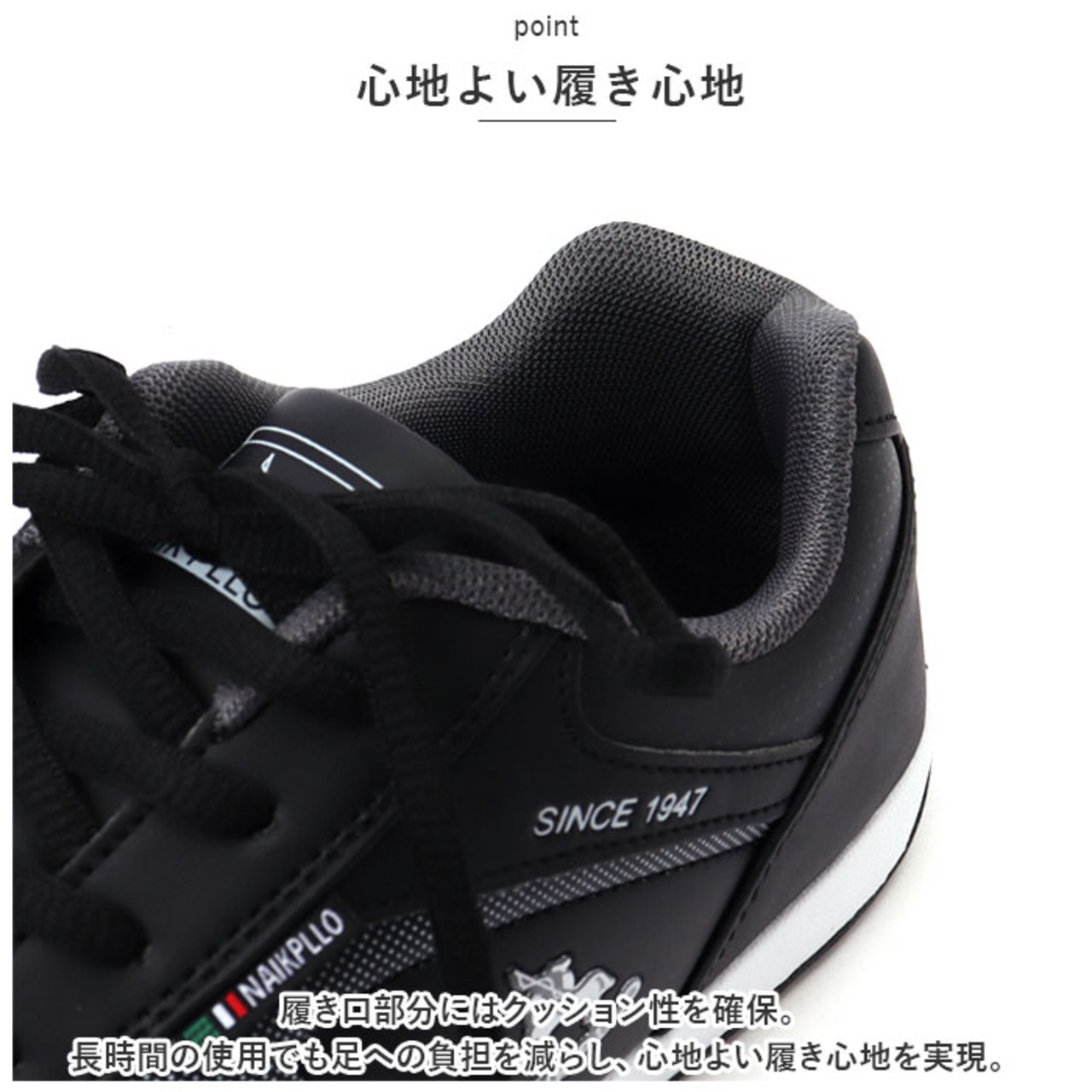 ・履き口部分にはクッション性を確保。長時間の使用でも足への負担を減らし、心地よい履き心地を実現。
