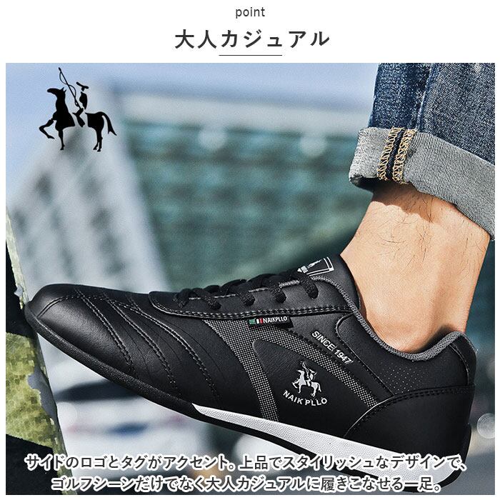 ・サイドのロゴとタグがアクセント。上品でスタイリッシュなデザインで、ゴルフシーンだけでなく大人カジュアルに履きこなせる一足。