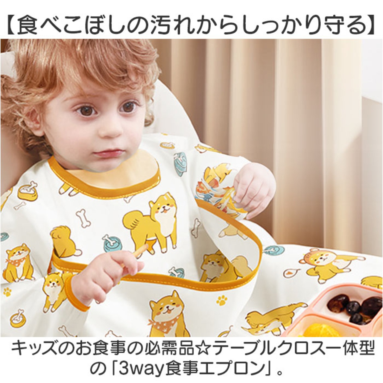 ・キッズのお食事の必需品☆テーブルクロス一体型の「3way食事エプロン」。