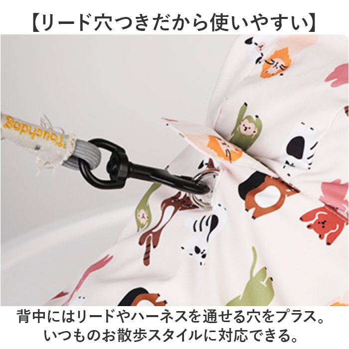 ・背中にはリードやハーネスを通せる穴をプラス。いつものお散歩スタイルに対応できる。