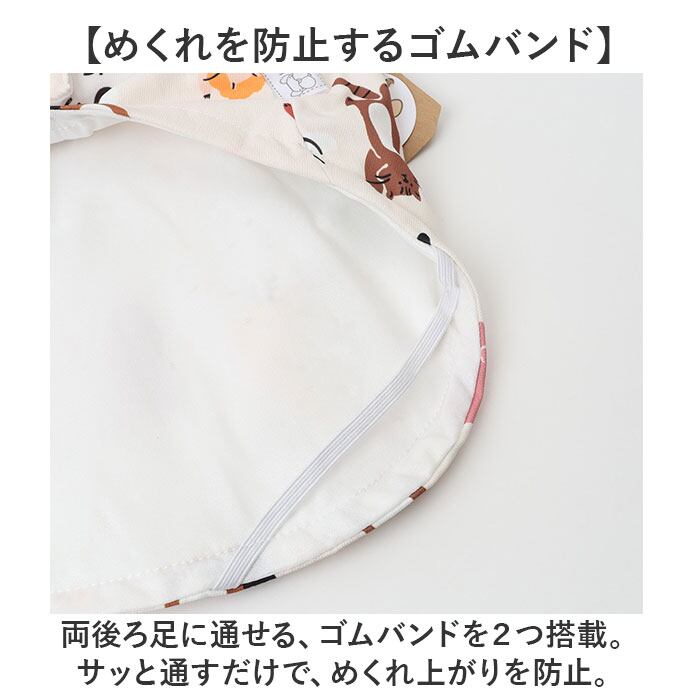 ・両後ろ足に通せる、ゴムバンドを2つ搭載。サッと通すだけで、めくれ上がりを防止。