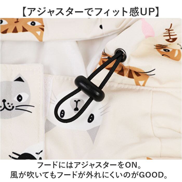 ・フードつきなので、頭まで雨からカバーしてくれる!ちょこんとお耳デザインがキュート♪