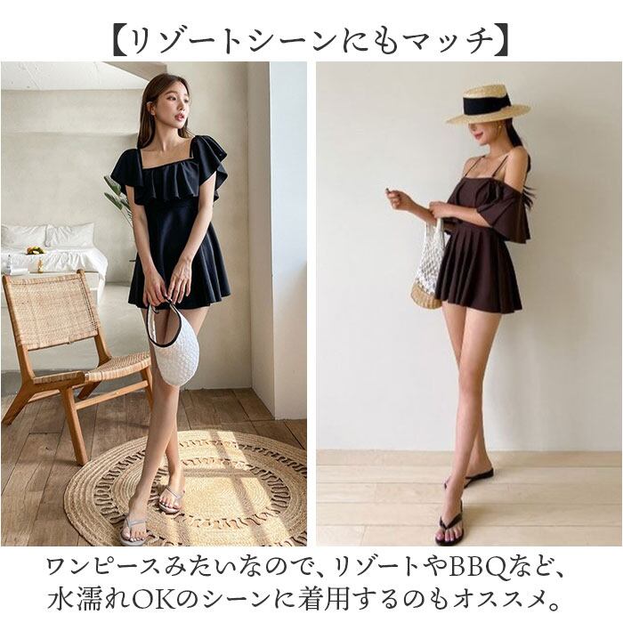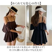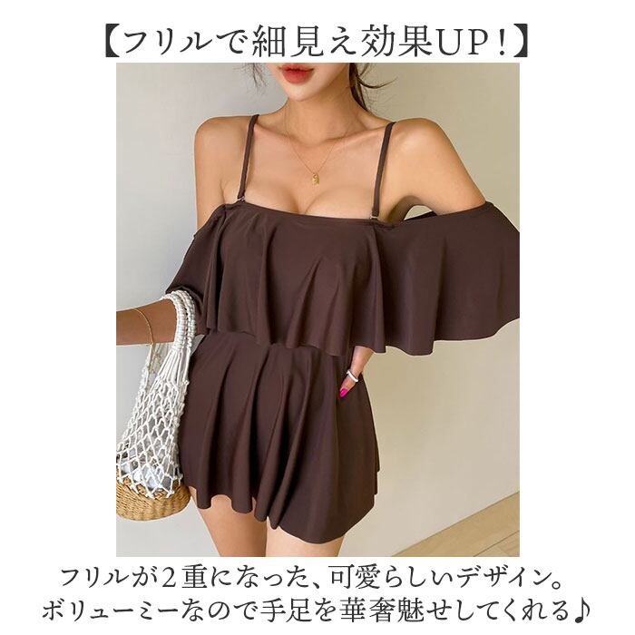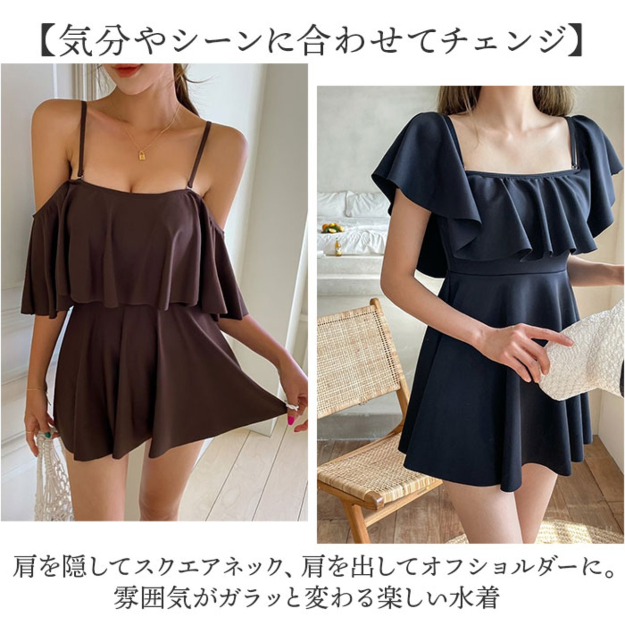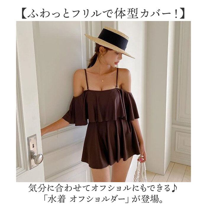 水着 ワンピース レディース オフショルダー 通販 スイムウェア ワンピース水着 水陸両用 オフショル 可愛い かわいい 体型カバー ゆったり フリル セクシー 夏 プール 海 海水浴 おしゃれ 女性 露出控えめ 大人女子 温泉 リゾート