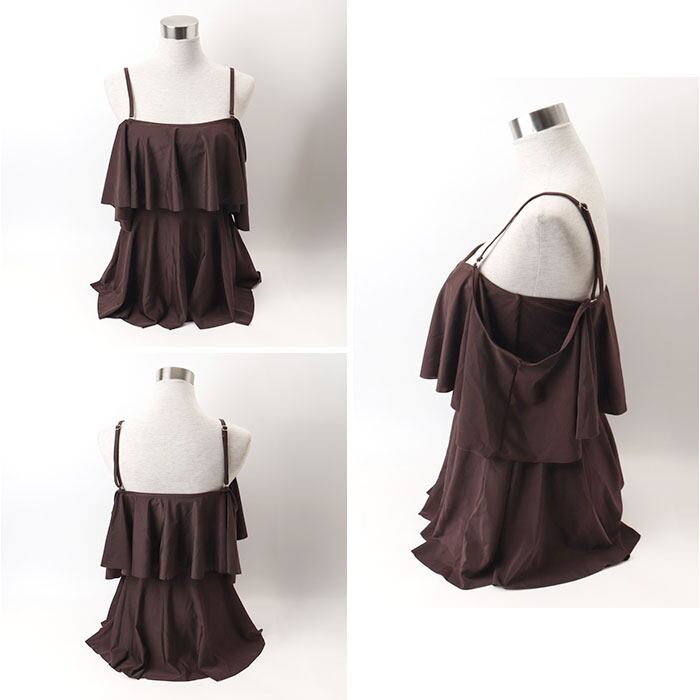 ・肩を隠してスクエアネック、肩を出してオフショルダーに。雰囲気がガラッと変わる楽しい水着