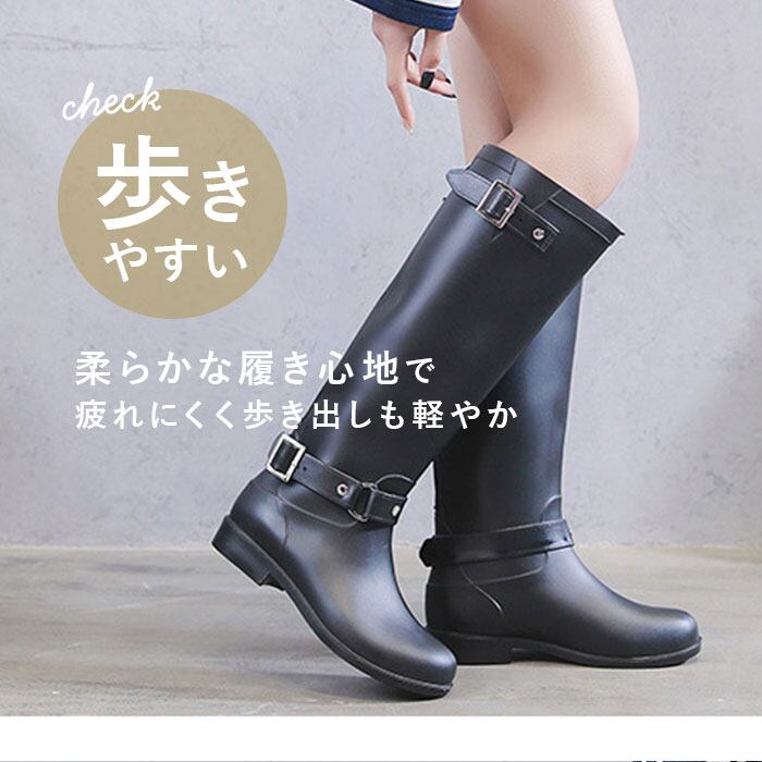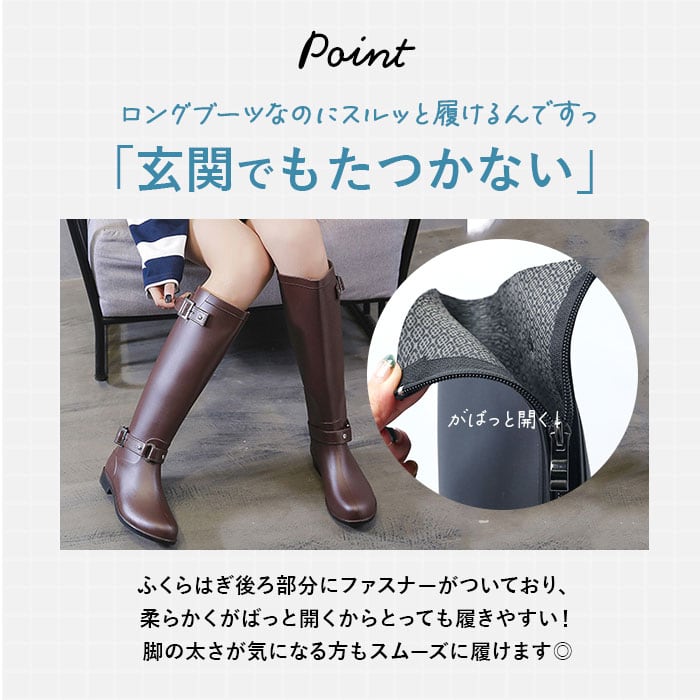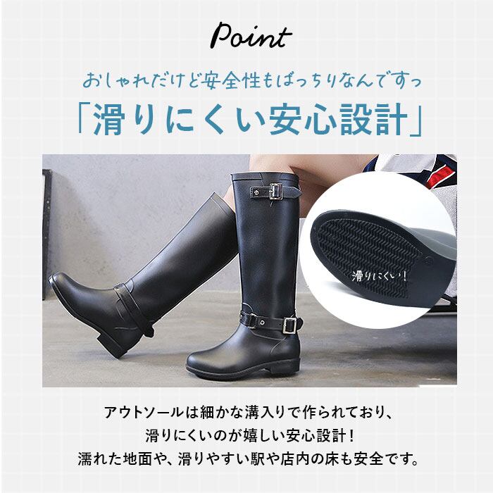 ・レインブーツに見えないスタイリッシュなロングブーツタイプ。いつものスタイルを崩さず、雨の日もオシャレに。
