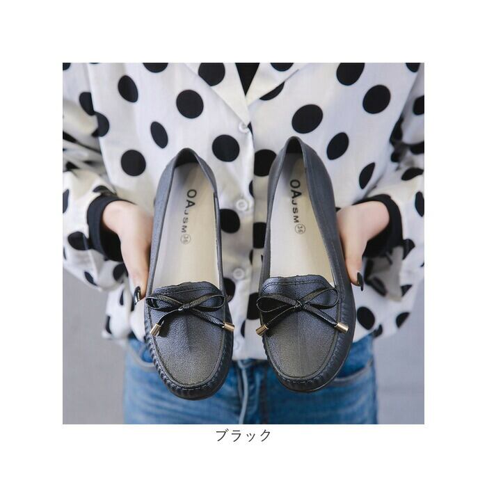 ・ゴールドの金具を使用したリボンデザインがアクセントに。ベーシックカラーや優しい色味のパステルカラーなど幅広いコーディネートに対応。