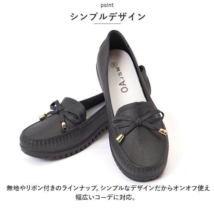 ・レインブーツに見えないスタイリッシュなローファータイプ。いつものスタイルを崩さず、雨の日もオシャレに。