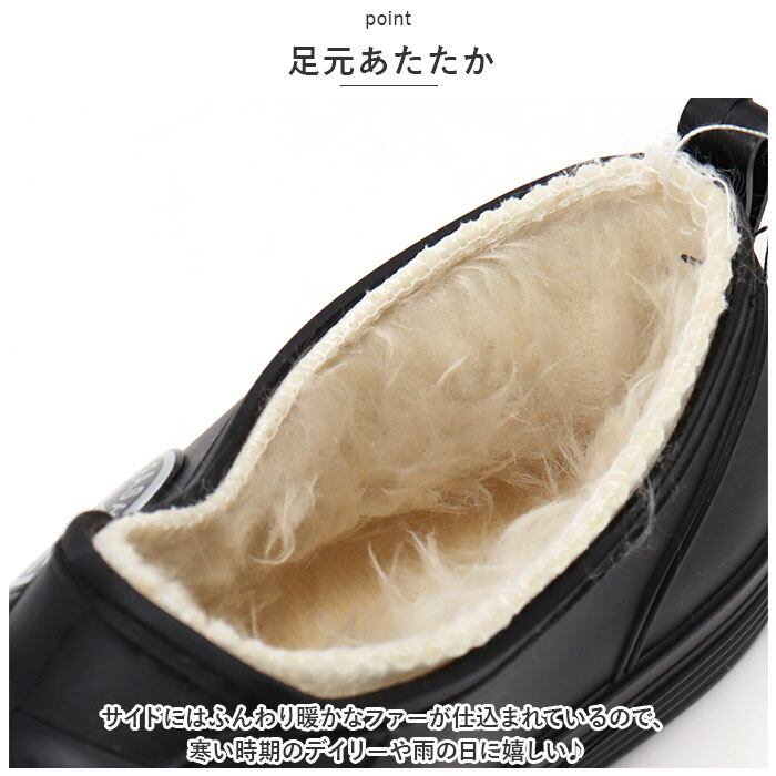 ・サイドにはふんわり暖かなファーが仕込まれているので、寒い時期のデイリーや雨の日に嬉しい♪