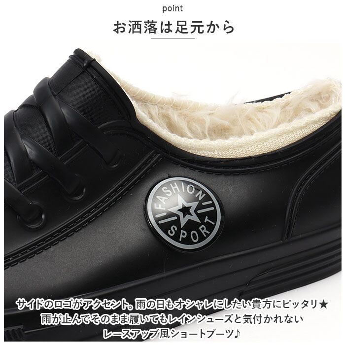 ・雨が止んでそのまま履いてもレインシューズと気付かれないレースアップ風ショートブーツ♪