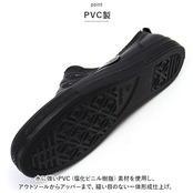 ・水に強いPVC(塩化ビニル樹脂)素材を使用し、アウトソールからアッパーまで、縫い目のない一体形成仕上げ。