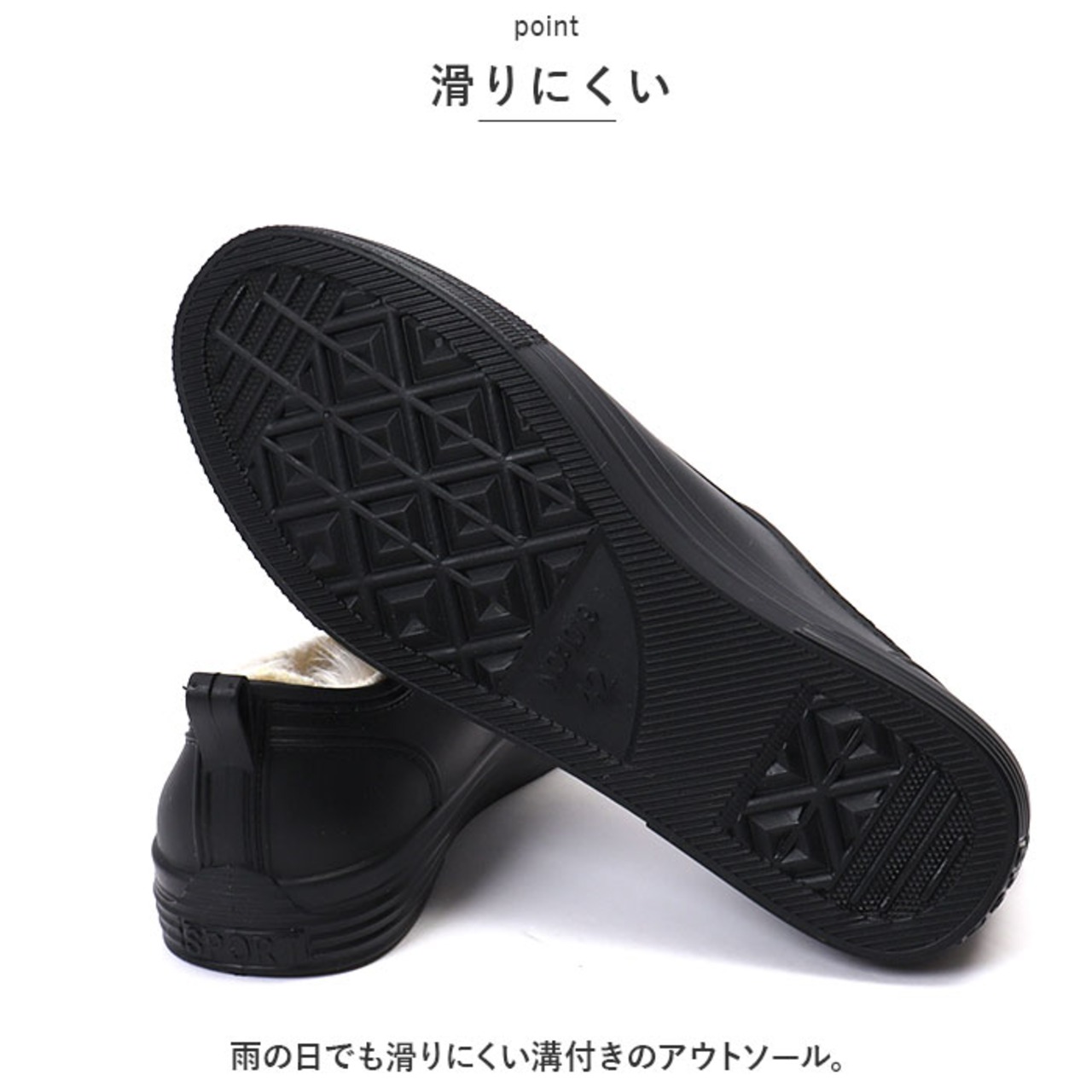・雨の日でも滑りにくい溝付きのアウトソール。