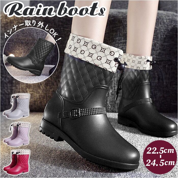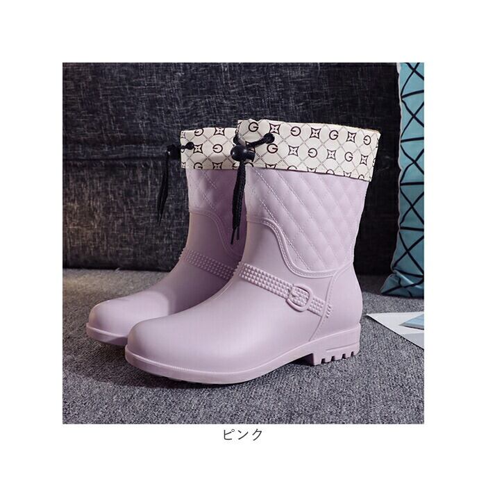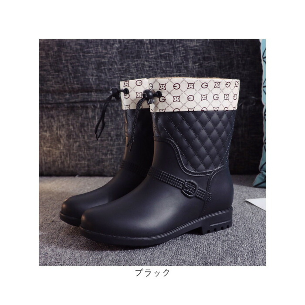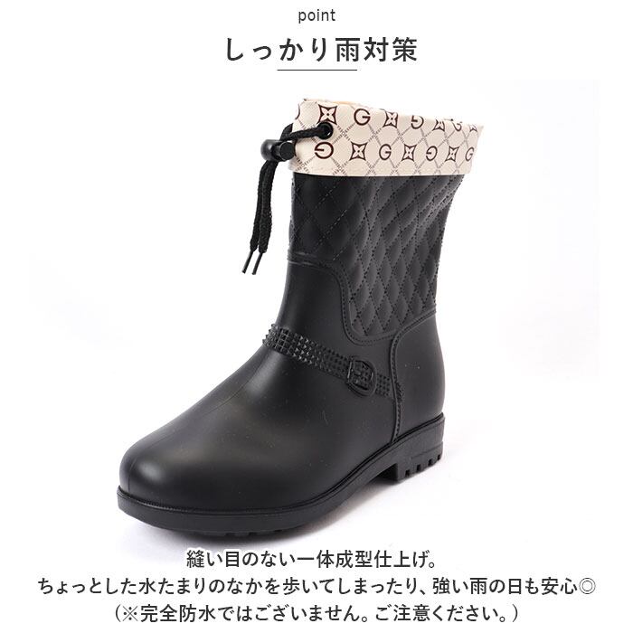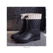・普段のブーツみたいにおしゃれに履きこなせるレインシューズ♪キルティングとウェスタンブーツ風のベルトデザインがポイント!