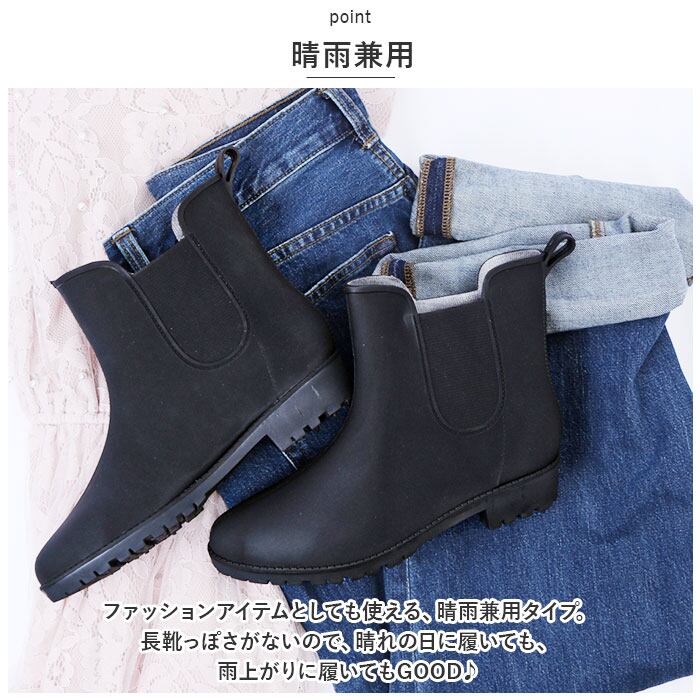 ・ファッションアイテムとしても使える、晴雨兼用タイプ。長靴っぽさがないので、晴れの日に履いても、雨上がりに履いてもGOOD♪
