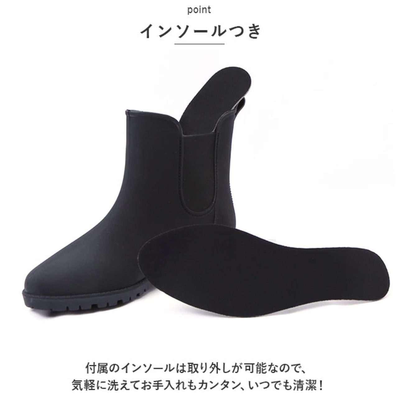 ・付属のインソールは取り外しが可能なので、気軽に洗えてお手入れもカンタン、いつでも清潔!