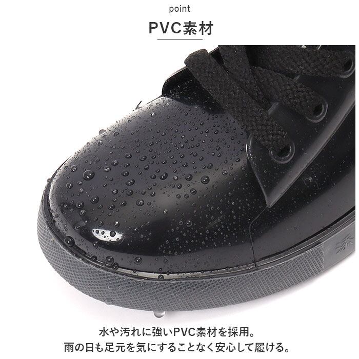 ・水や汚れに強いPVC素材を採用。雨の日も足元を気にすることなく安心して履ける。