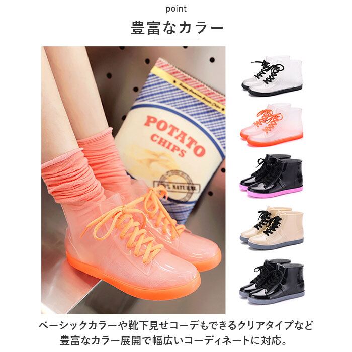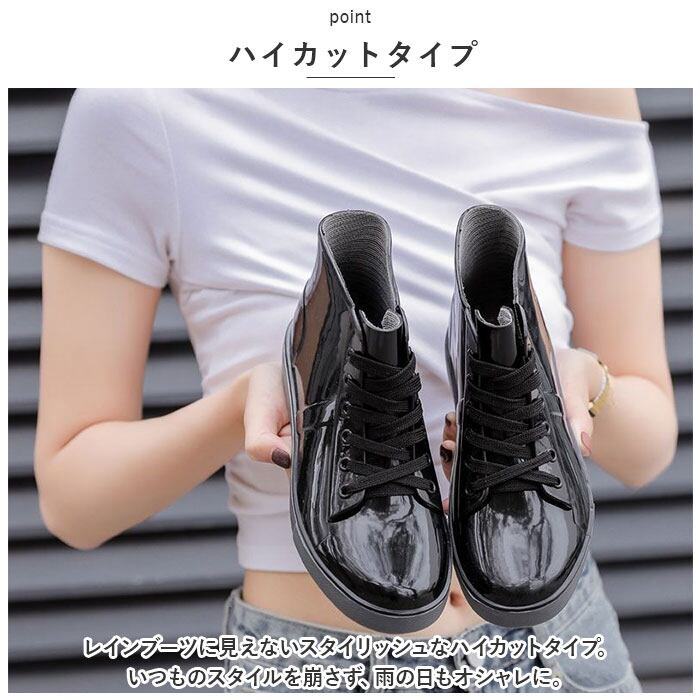 ・レインブーツに見えないスタイリッシュなハイカットタイプ。いつものスタイルを崩さず、雨の日もオシャレに。
