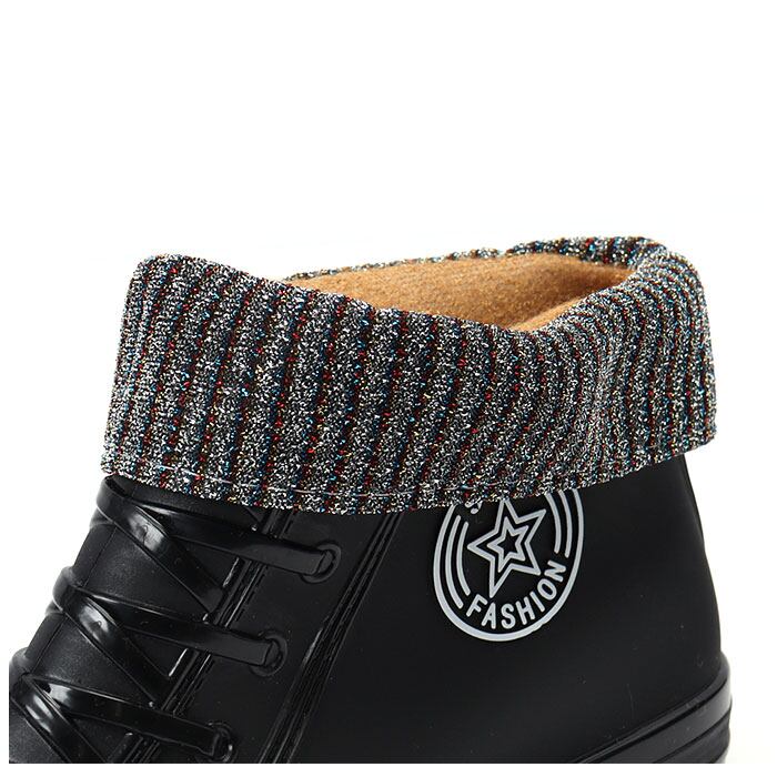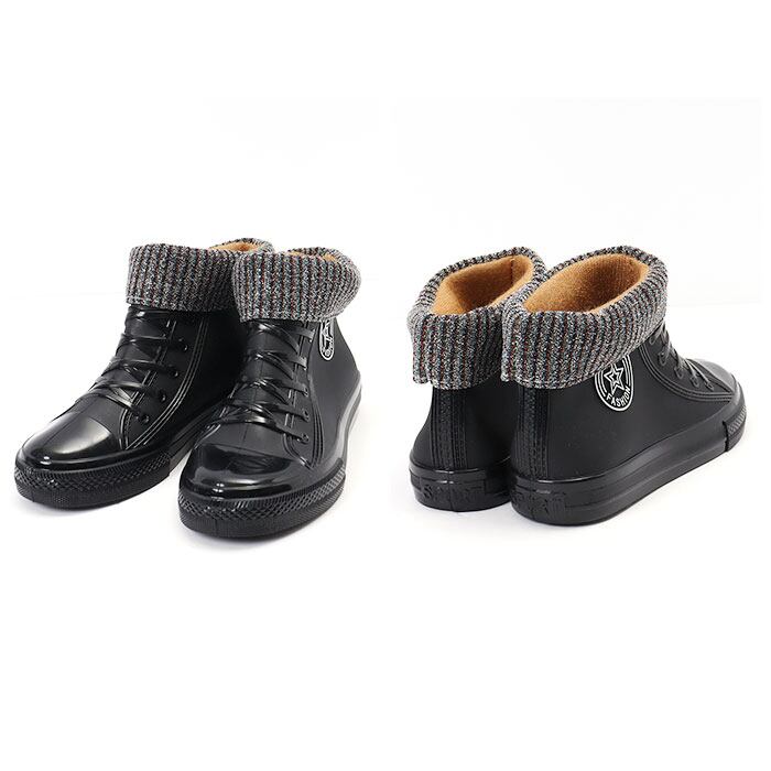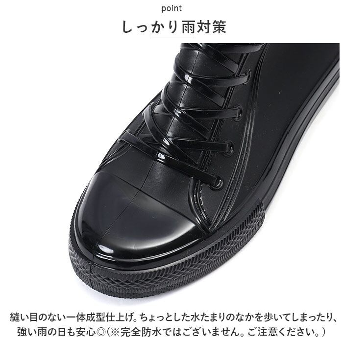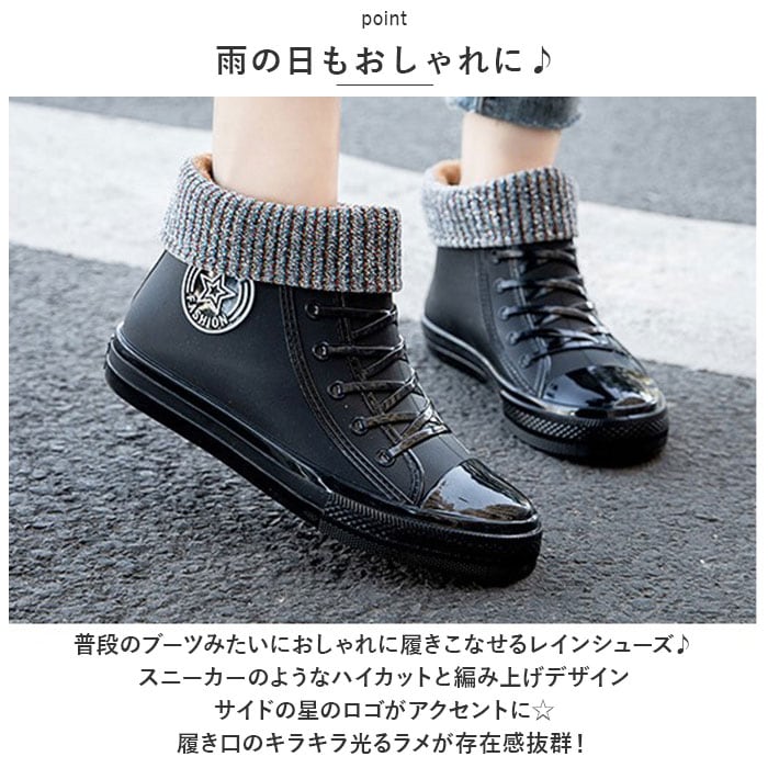 ・普段のブーツみたいにおしゃれに履きこなせるレインシューズ♪スニーカーのようなハイカットと編み上げデザイン・サイドの星のロゴがアクセントに☆