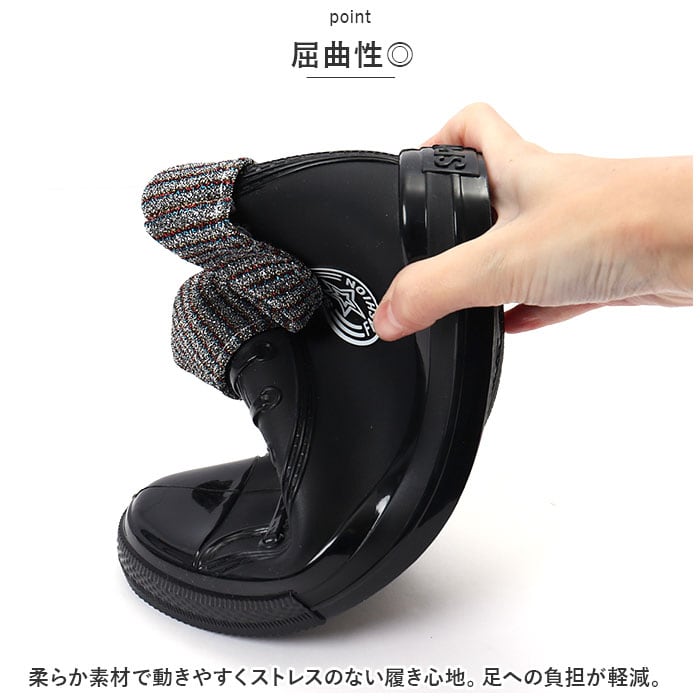 ・縫い目のない一体成型仕上げ。ちょっとした水たまりのなかを歩いてしまったり、強い雨の日も安心◎(※完全防水ではございません。ご注意ください。)