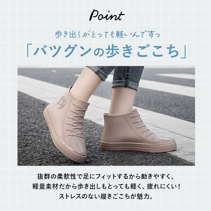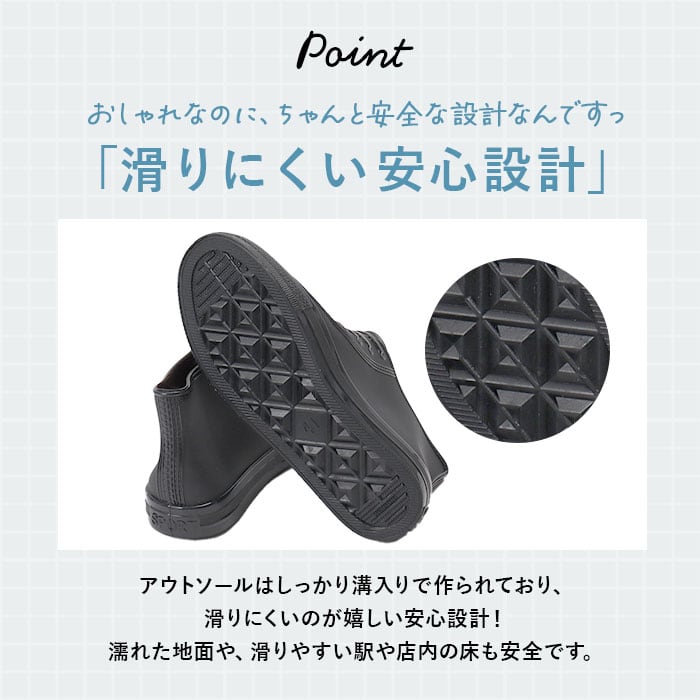 ・撥水性が高いPVC素材なので、普段使いはもちろん雨の日のレインシューズとしても◎シンプルデザインなので、色んなファッションに合わせやすいのも嬉しいポイント。