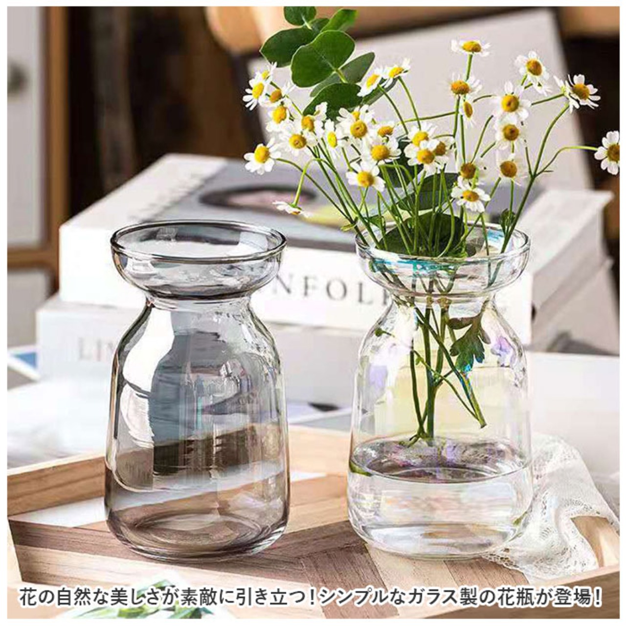 ・花の自然な美しさが素敵に引き立つ!シンプルなガラス製の花瓶が登場!