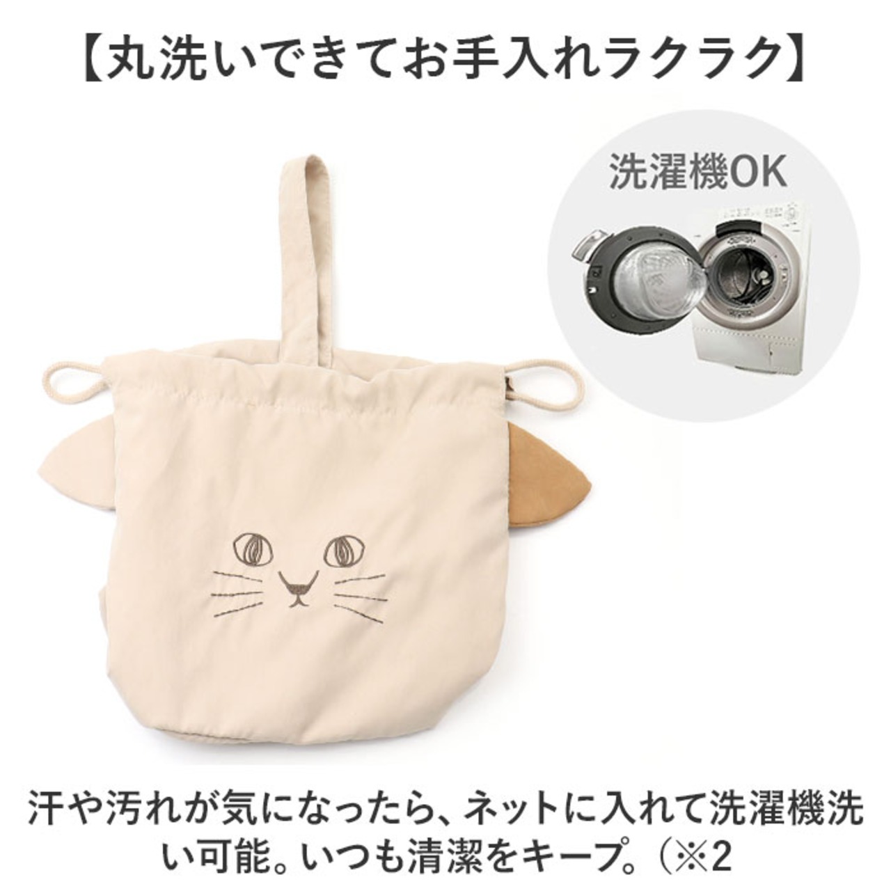 ・汗や汚れが気になったら、ネットに入れて洗濯機洗い可能。いつも清潔をキープ。