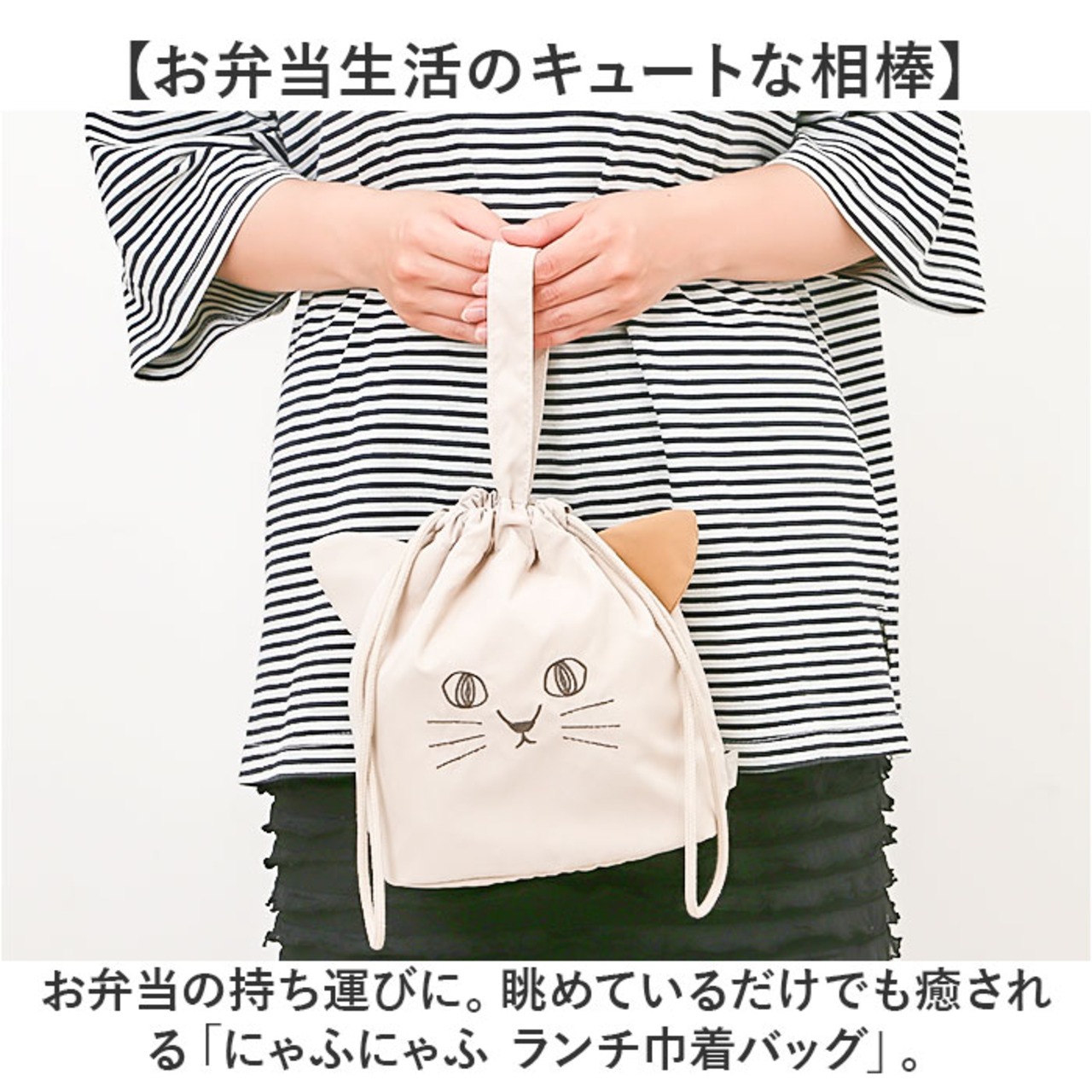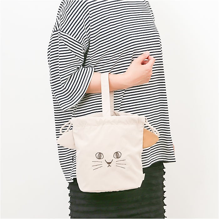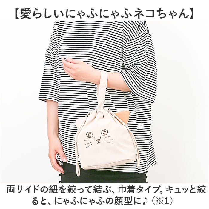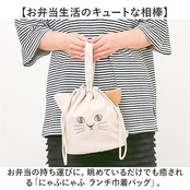 ・お弁当の持ち運びに。眺めているだけでも癒される「にゃふにゃふ ランチ巾着バッグ」。