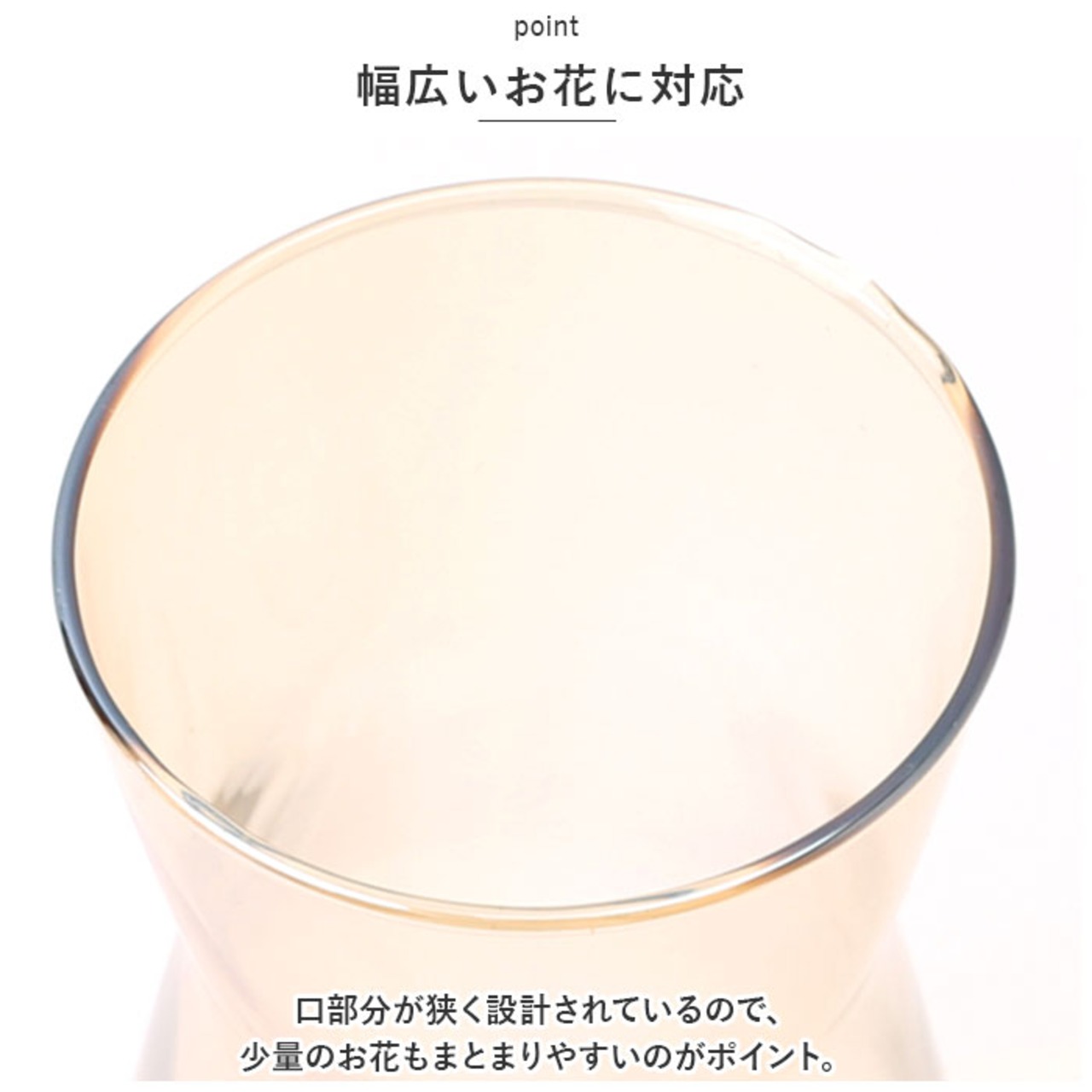 ・口部分が狭く設計されているので、少量のお花もまとまりやすいのがポイント。