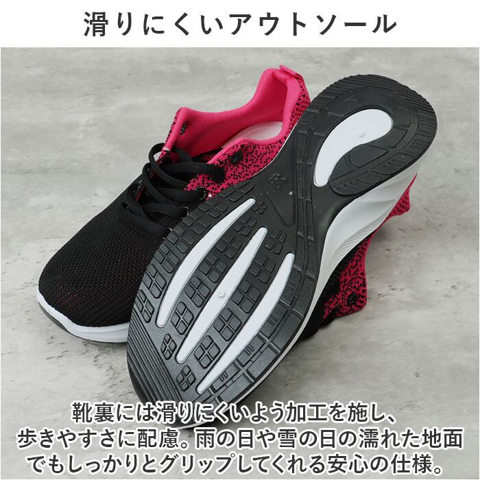 ・靴裏には滑りにくいよう加工を施し、歩きやすさに配慮。雨の日や雪の日の濡れた地面でもしっかりとグリップしてくれる安心の仕様。