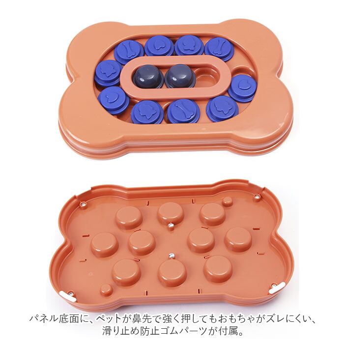 ・パネル底面に、ペットが鼻先で強く押してもおもちゃがズレにくい、滑り止め防止ゴムパーツが付属。