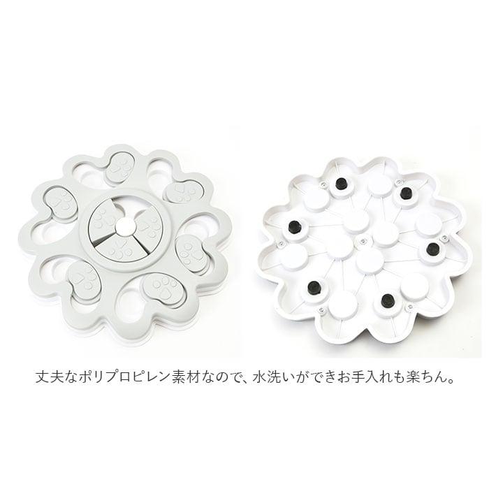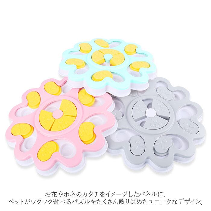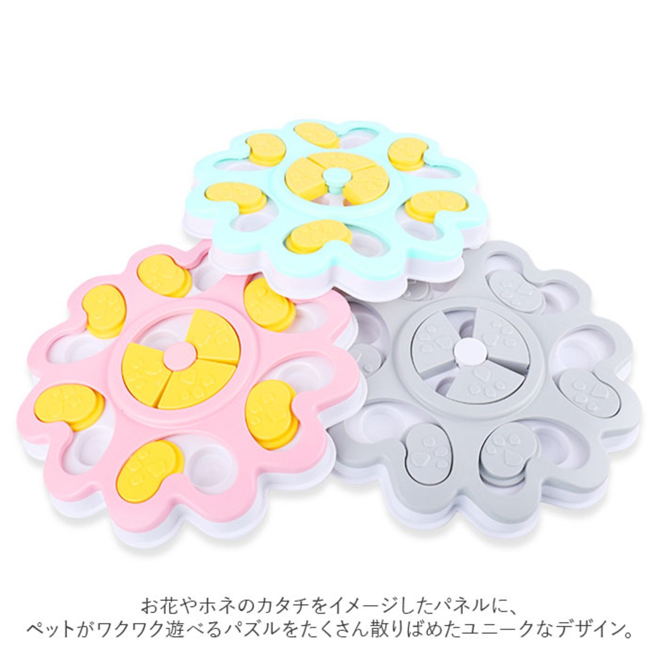 ・お花やホネのカタチをイメージしたパネルに、ペットがワクワク遊べるパズルをたくさん散りばめたユニークなデザイン。