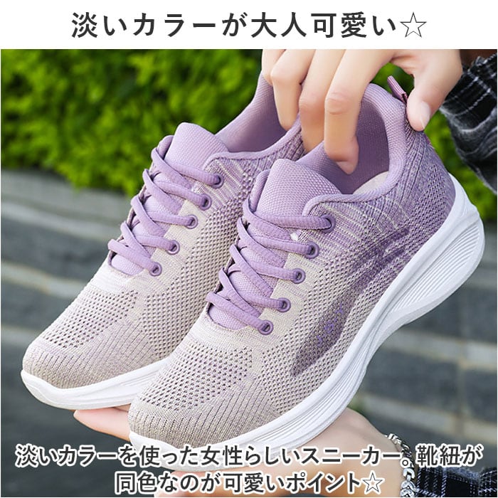 ・淡いカラーを使った女性らしいスニーカー。靴紐が同色なのが可愛いポイント☆