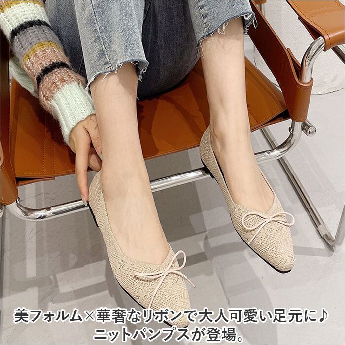 ・美フォルム×華奢なリボンで大人可愛い足元に♪ニットパンプスが登場。