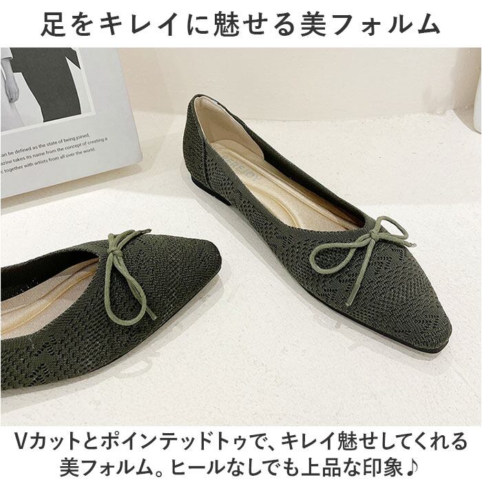 ・Vカットとポインテッドトゥで、キレイ魅せしてくれる美フォルム。ヒールなしでも上品な印象♪