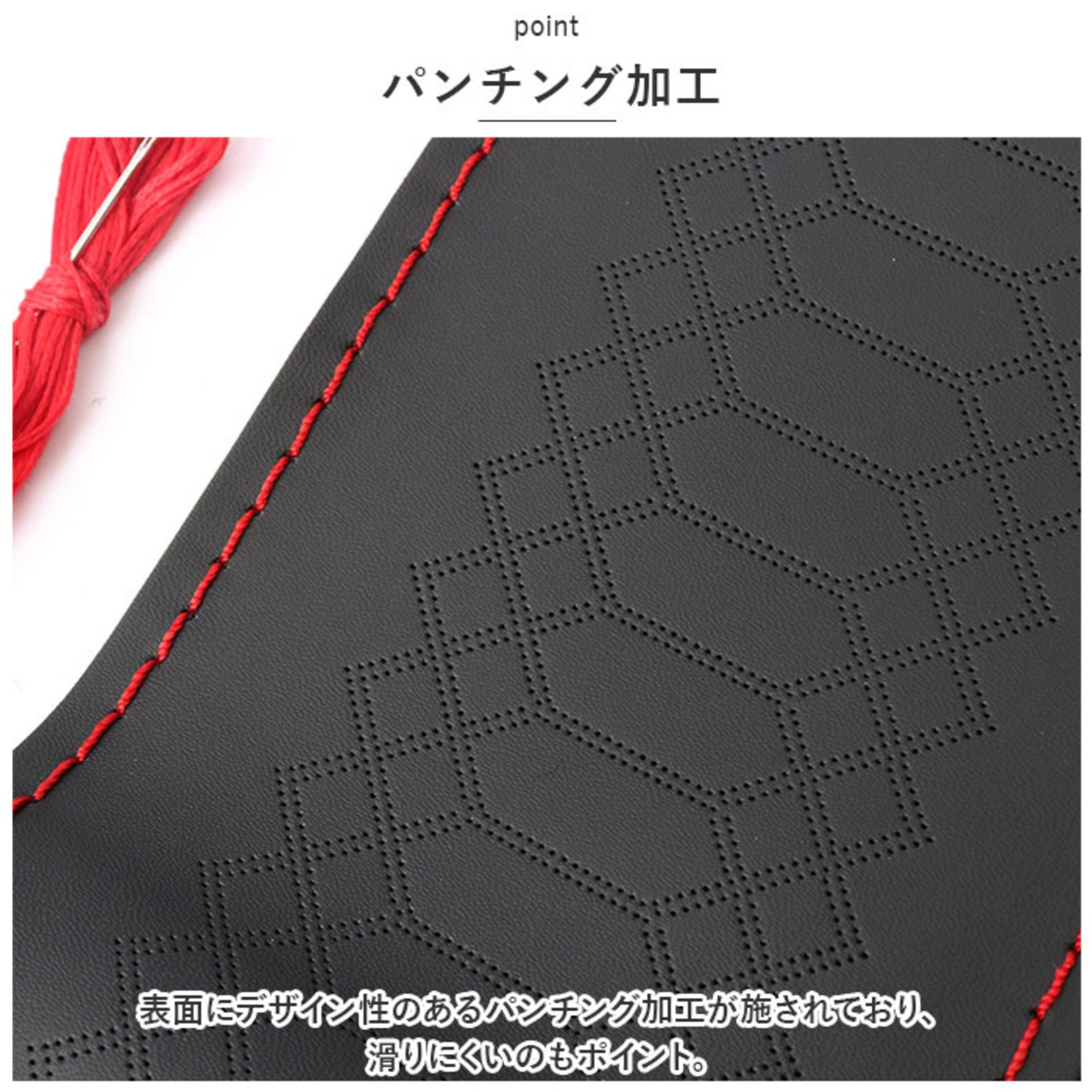 ・表面にデザイン性のあるパンチング加工が施されており、滑りにくいのもポイント。