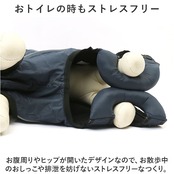 ・お腹周りやヒップが開いたデザインなので、お散歩中のおしっこや排泄を妨げないストレスフリーなつくり。