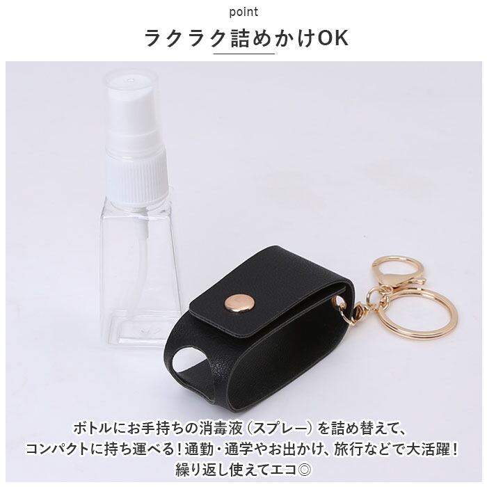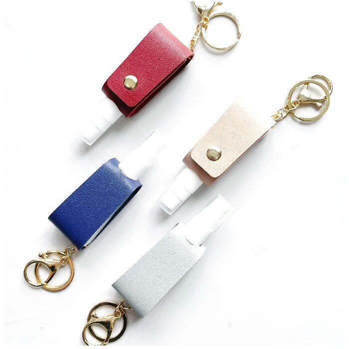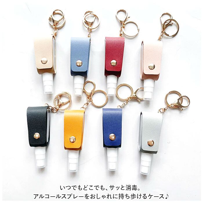 ハンドスプレーケース 通販 ハンドスプレー ホルダー スプレーボトル 携帯 携帯用 ケース 持ち歩き PU レザー キーホルダー キーリング 通勤 通学 おでかけ 旅行 消毒スプレー 除菌 除菌グッズ かわいい おしゃれ 化粧水 小分け 詰め替え