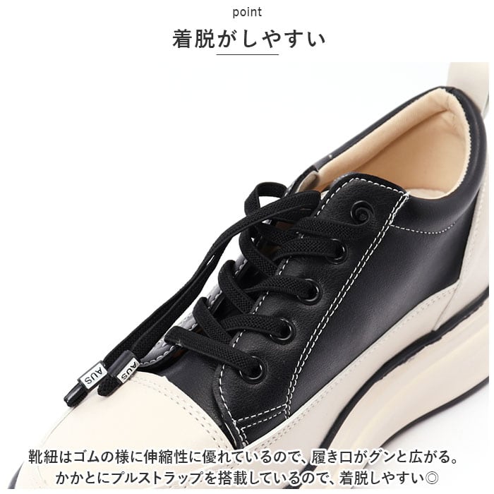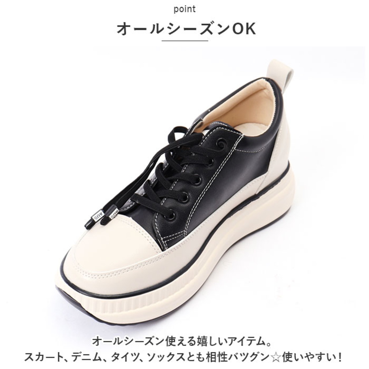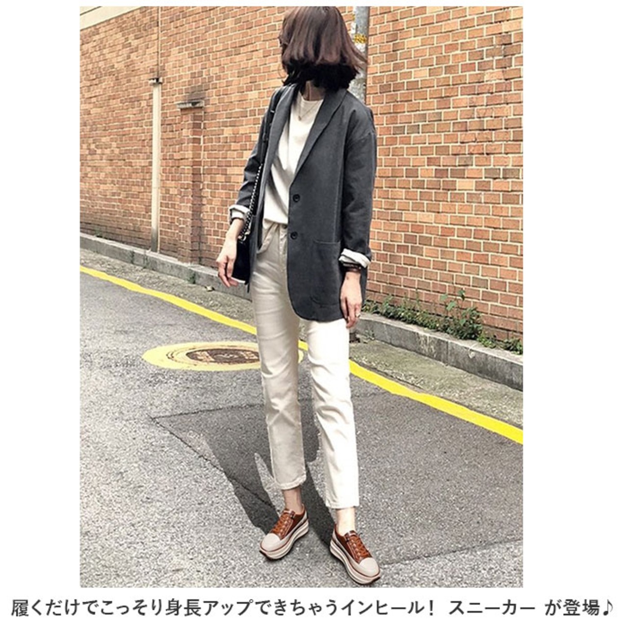 ・厚底のソールとインヒールの高さでこっそり身長アップ!見た目は普通のスニーカー、でも履くだけでスタイルUPしちゃう優れモノ。