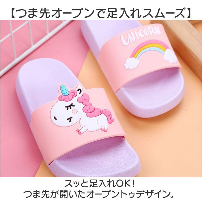 ・ユニコーンやレインボーのワンポイントが印象的。可愛いサンダルで気分もアップ。