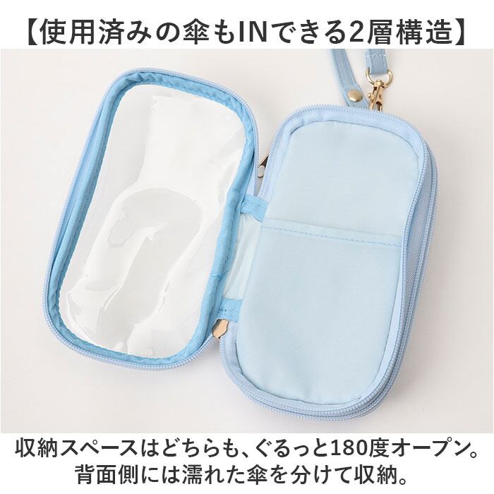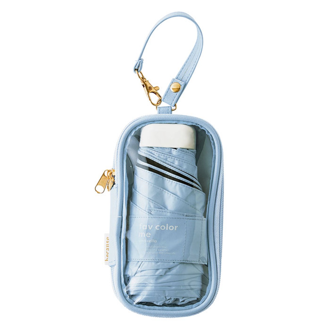 ・多機能ポーチ付き「because PUファボカラーミーアンブレラ 折りたたみ傘」。