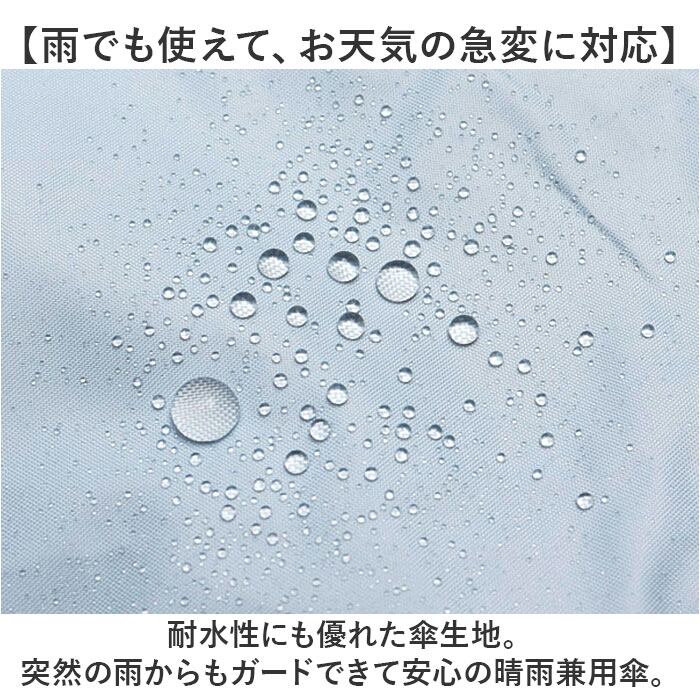 ・耐水性にも優れた傘生地。突然の雨からもガードできて安心の晴雨兼用傘。