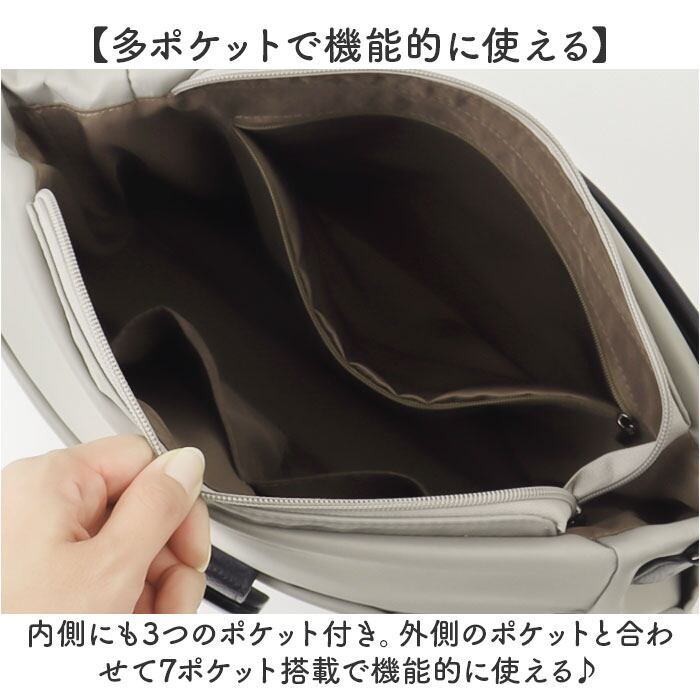 ・内側にも3つのポケット付き。外側のポケットと合わせて7ポケット搭載で機能的に使える♪