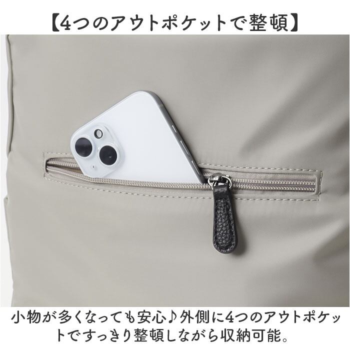 ・小物が多くなっても安心♪外側に4つのアウトポケットですっきり整頓しながら収納可能。
