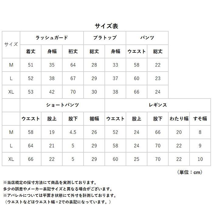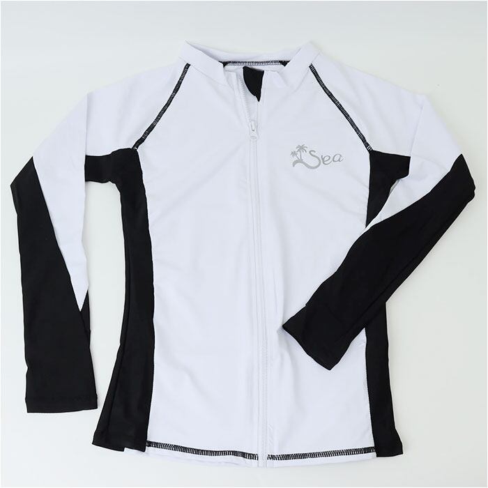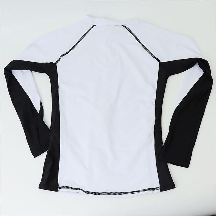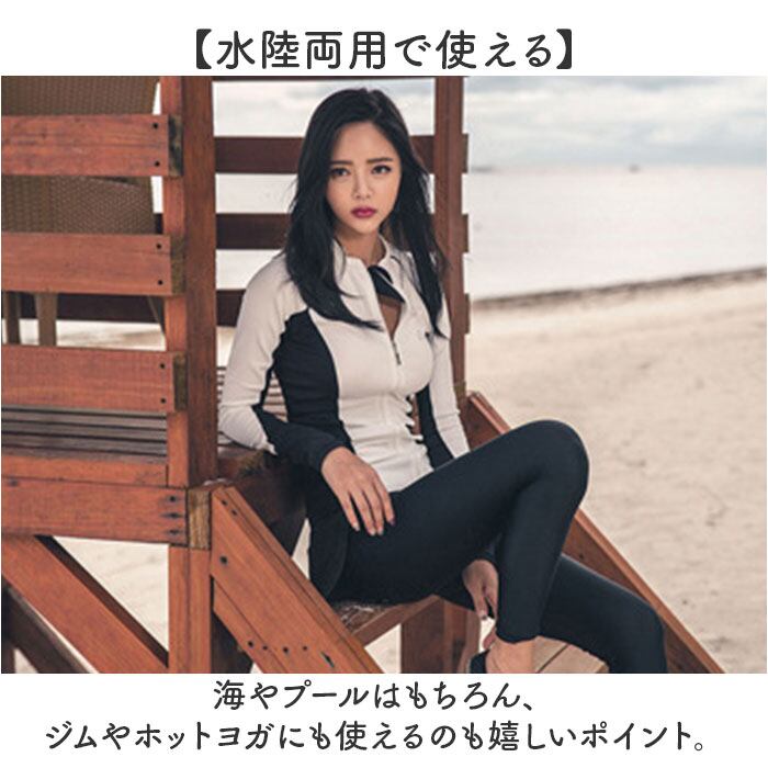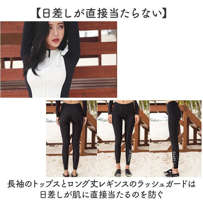 ・長袖のトップスとロング丈レギンスのラッシュガードは日差しが肌に直接当たるのを防ぐ