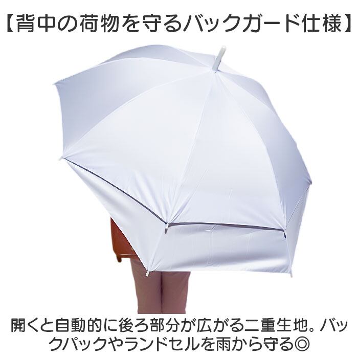 ・後ろが伸びて、荷物が濡れにくい特殊骨構造!「バックガードアンブレラ キッズ 55cm」。