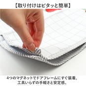 4つのマグネットでドアフレームにすぐ装着。工具いらずの手軽さと安定感。