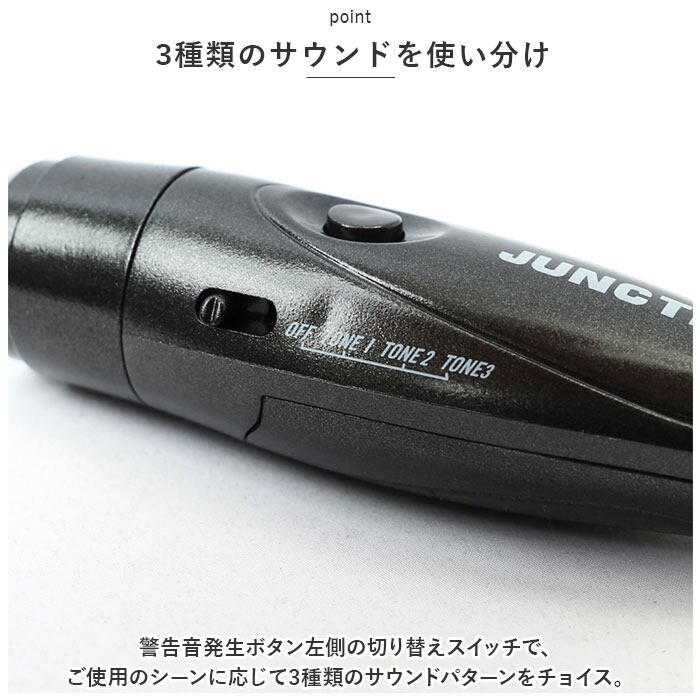 ・警告音発生ボタン左側の切り替えスイッチで、ご使用のシーンに応じて3種類のサウンドパターンをチョイス。