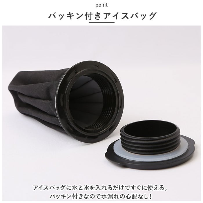 ・アイスバッグに水と氷を入れるだけですぐに使える。パッキン付きなので水漏れの心配なし!