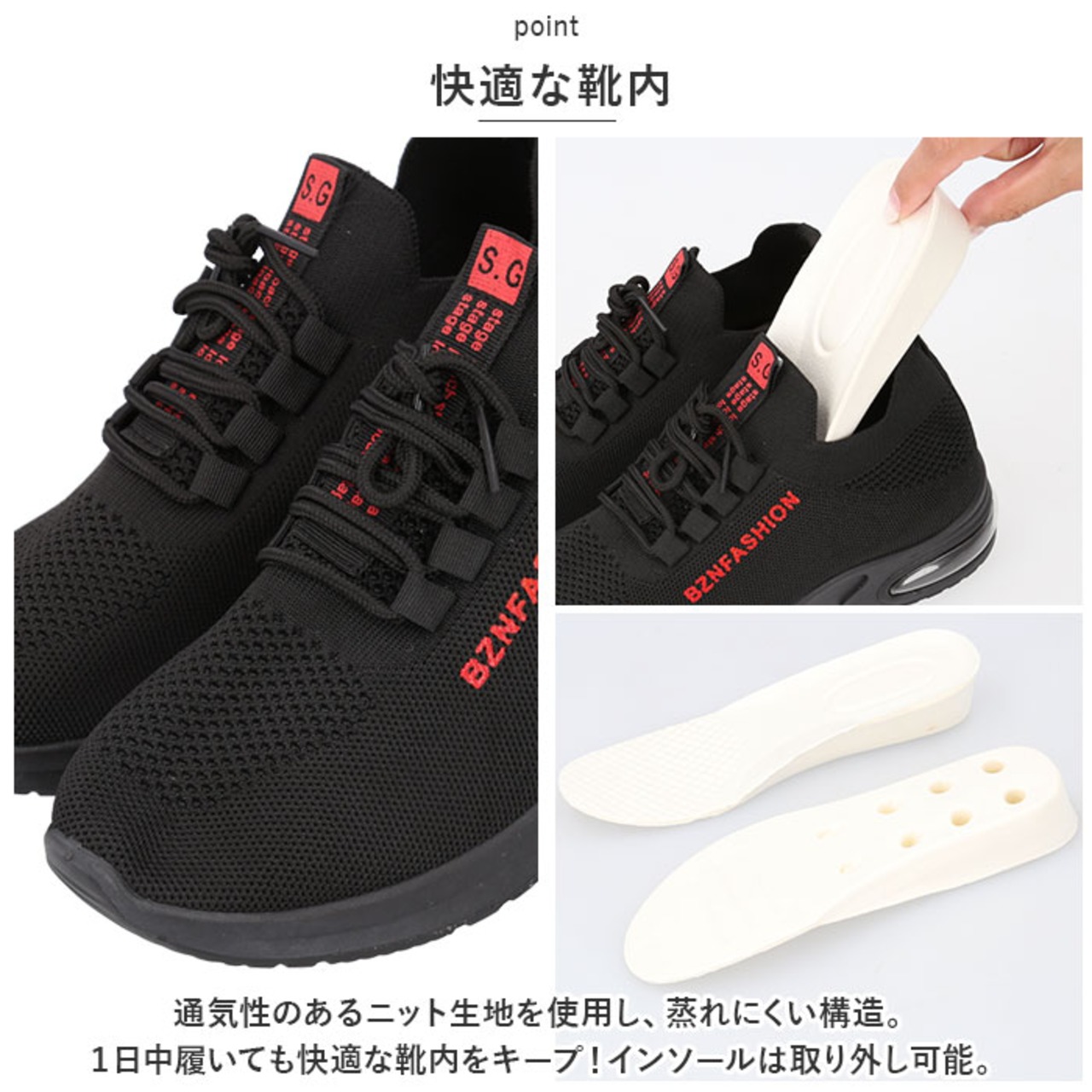 ・通気性のあるニット生地を使用し、蒸れにくい構造。1日中履いても快適な靴内をキープ!インソールは取り外し可能。
