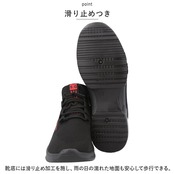・靴底には滑り止め加工を施し、雨の日の濡れた地面も安心して歩行できる。